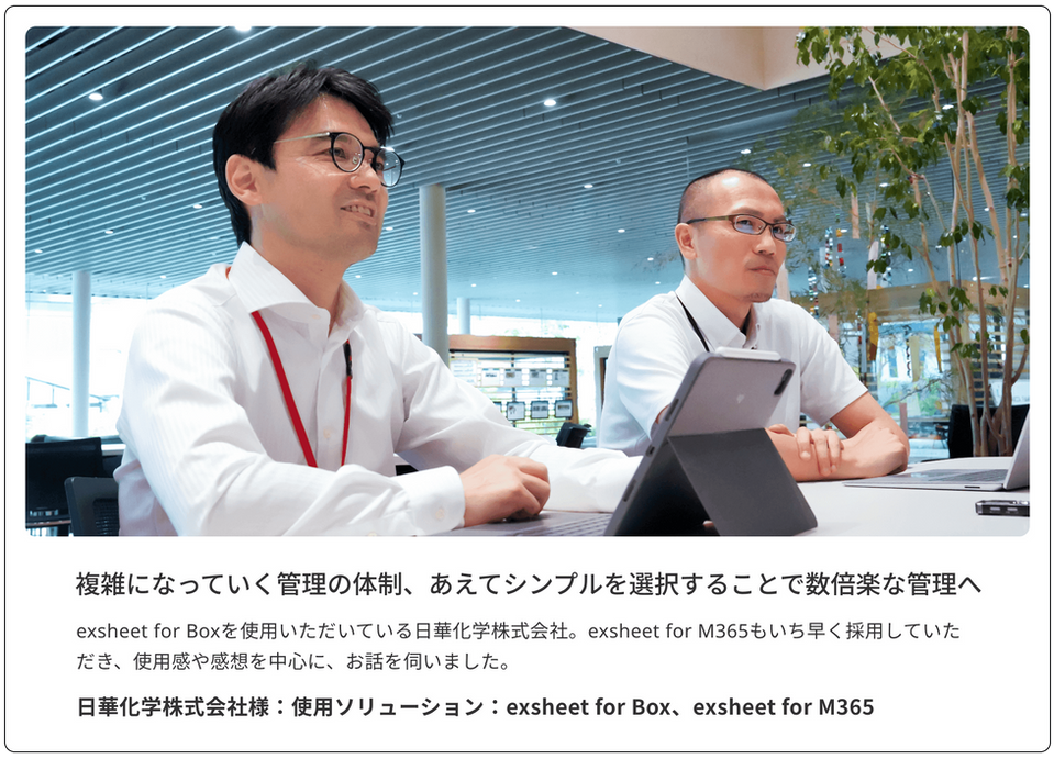現状はexsheet for Box, onestep for Box, exsheet for M365 の3種を開発・販売しておりますが、順次レパートリーを増やす予定です。